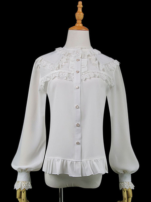 Chemise Sweet Lolita Haut en lolita blanc avec dentelle et volants en mousseline Déguisements Halloween & Déguisement > Vêtements de Lolita > Lolita Top > Chemisiers Lolita