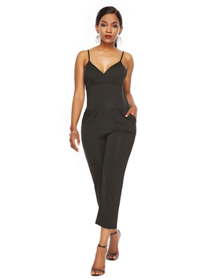 Combinaison noire bretelles col sans manches passepoil polyester extensible maigre tenue dété une pièce & Mode Femme > Combinaison Femmes