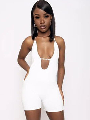 Combishort blanc couleur bloc licou sans manches découpé irrégulière sans bretelles polyester maigre été une pièce tenue & Mode Femme > Combinaison Femmes