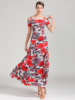 Costumes de danse de salon Sarcelle femme Sexy Polyester imprimé fleuri bretelles cou robe robe de danse & Déguisement > Costume > Costumes de Danse > Costumes de danse de bal