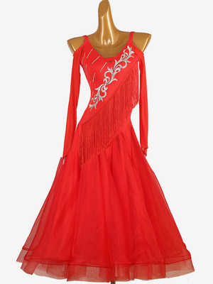 Costumes De Danse De Salon Ture Red Robe En Lycra Et Spandex Pour