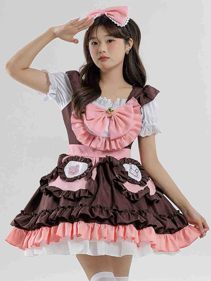 Costumes de femme de chambre Robe de fille marron café & Déguisement > Costume > Fêtes Déguisement > Articles de Halloween > Déguisement Sexy Servante