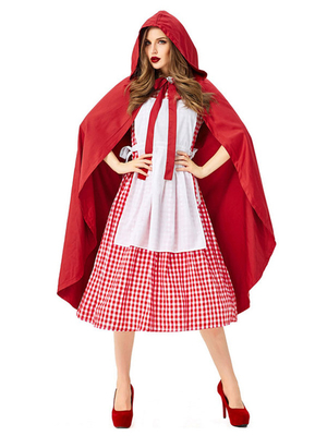 Costumes de vacances pour femmes Robe élégante rouge Costume de vacances Cape en couches à carreaux & Déguisement > Costume > Fêtes Déguisement > Costumes de Carnaval > Costumes du Petit Chaperon Rouge
