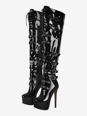 Cuissardes Plate-Forme Sexy Sur Bottes Au Genou Boucle Chaussures Talon Aiguille & Chaussures > Chaussures de Circonstance > Chaussures sexy > Bottes sexy