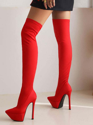 Cuissardes à Talons Hauts Femme avec Bout Pointu à Zip Unicolore & Chaussures > Chaussures femme > Bottes > Cuissardes