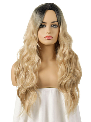Femmes longue perruque légère or centre séparation fibre résistante à la chaleur Chic ébouriffé longues perruques synthétiques & Mode Femme > Accessoires > Perruques des Femmes > Perruques Synthétiques > Perruques synthétiques longues