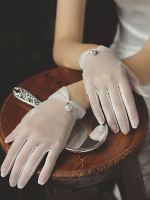Gants de mariage femme tulle perles gants blancs de mariée & Mariage > Accessoires de mariage > Gants de mariage