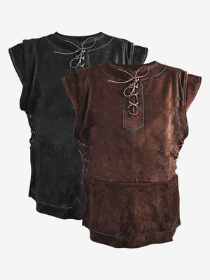Gilet noir vintage à lacets et manches longues en polyester pour homme & Déguisement > Costume > Costumes Vintages > Retro Costumes Pour Homme