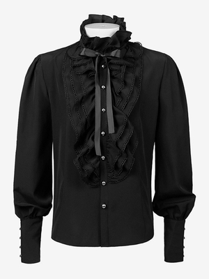 Haut en fibre de polyester à manches longues vintage noir vintage costumes rétro pour homme & Déguisement > Costume > Costumes Vintages > Retro Costumes Pour Homme