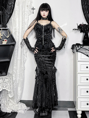 Jupes Lolita en jacquard noir à lacets style gothique Lolita SK & Vêtements de Lolita > Robes Lolita > Jupes Lolita