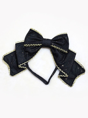 lolita coiffure en fibre polyester classique impression"idienne avec dentelle et noeud noire Coiffure Déguisements Halloween & Déguisement > Vêtements de Lolita > Bijoux > Lolita Coiffe