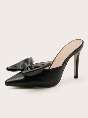 Mules à talons pour femmes Bows Slip On Stiletto Heel PU Leather Mules noires & Chaussures > Chaussures femme > Pantoufles > Mules et sabots
