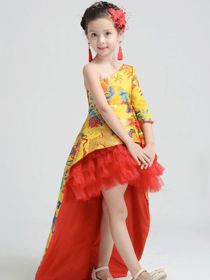 Pageant Enfants Robes De Style Chinois Filles Robes Formelles Asymétriques Brodées & Mariage > Robes de soirée pour mariage > Robes cortège enfant