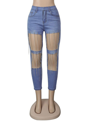 Pantalon pour femme Pantalon en denim déchiré à franges bleues Jeans & Mode Femme > Bas Femmes > Pantalons
