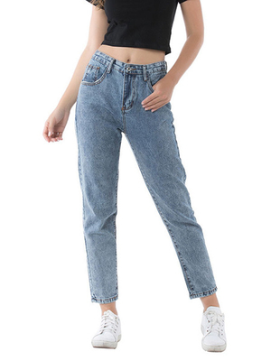 Pantalons Femmes Droits en Denim Bleu Fermeture avec Bouton et Zip Pantalons Femmes & Mode Femme > Bas Femmes > Pantalons