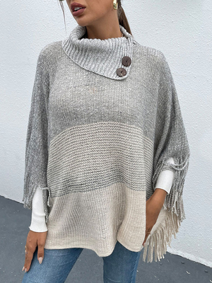Pull en Côtelé Femme Court avec Manches Longues à Col Montant avec Franges Pull Femme & Mode Femme > Pull-over > Pulls