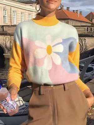 Pull en Maille Femme Hiver à Col Montant avec Manches Longues en Côtelé Imprimé avec Les Fleurs Pull en Maille Femme Hiver & Mode Femme > Pull-over > Pulls