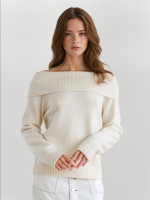 Pull Femme Blanc Col Bateau Manches Longues Top En Polyester & Mode Femme > Top > Pulls