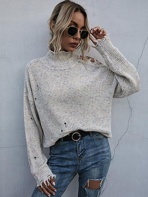 Pull Femme Pull Ecru Blanc Découpé Col Haut Manches Longues Polyester Pulls & Mode Femme > Pull-over > Pulls