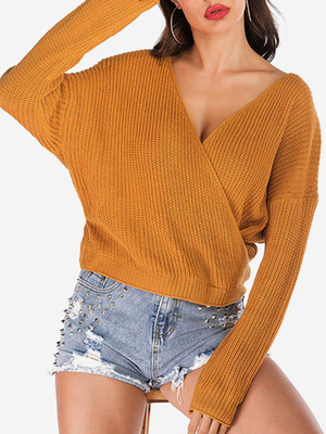 Pull Femme Pull Jaune Col V Manches Longues Polyester Pulls & Mode Femme > Pull-over > Pulls