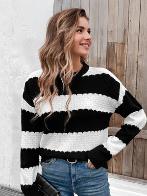 Pulls pour femmes pulls noirs bicolores à col bijou manches longues pulls superposés en acrylique & Mode Femme > Top > Pulls