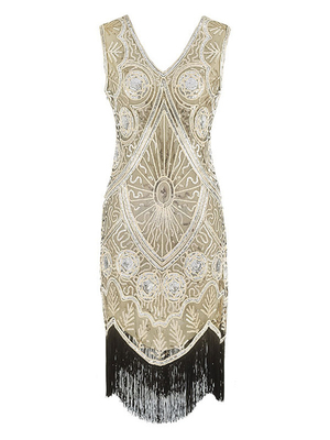 Flapper Rétro Costume Col V Glands Paillettes Robes Toussaint Pour