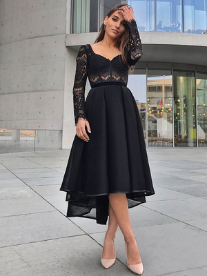 Robe De Bal Noire à Encolure En Cœur A-ligne Manches Longues Robe De