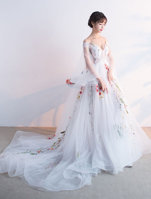 Robe de bal robe de soirée ivoire col V laçage sur dos manche longue à traîne & Mariage > Robes de Cérémonie > Robes de bal
