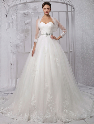 Robe de mariée boule tulle ivoire dentelle Avec traîne & Mariage > Robes de mariée > Robe de mariée princesse
