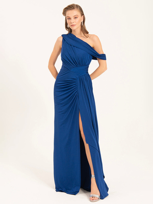 Robe de soirée sirène asymétrique en polyester longueur au sol plissée robes de soirée formelles & Mariage > Robes de Cérémonie > Robes de soirée