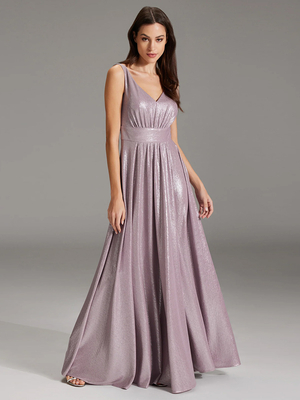 Robe de soirée trapèze à col en V et longueur au sol avec ceinture & Mariage > Robes de Cérémonie > Robes de soirée