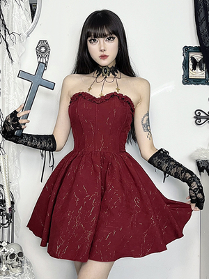 Robe gothique pour femme bordeaux à volants en forme de cœur tunique sexy en polyester robe courte & Déguisement > Costume > Gothique Vêtement