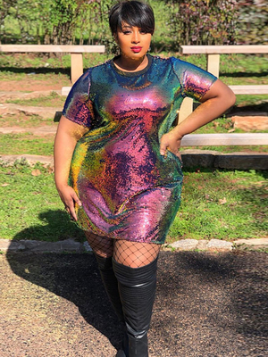 Robe Grande Taille en Paillette Vernis à Col Rond avec Manches Courtes Coupe Cintrée Multicolores Robe Eté Sexy & Vêtement Grandes Tailles > Robes Grandes Tailles