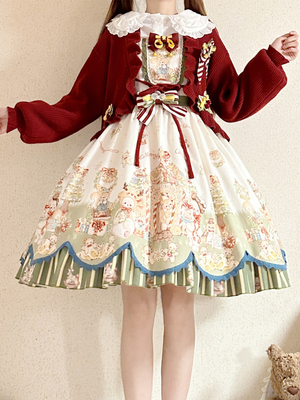 Robe Lolita douce en polyester avec nœuds sans manches Robe Lolita de Noël douce & Vêtements de Lolita > Robes Lolita > lolita douce