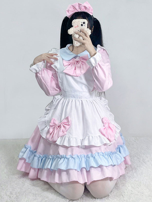 Robe Lolita Femme de ménage rose Robe à manches longues en polyester & Vêtements de Lolita > Robes Lolita > lolita douce
