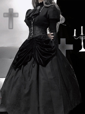 Robe Lolita Gothique Costume De La Comtesse Victoria À Volants Noir OP & Vêtements de Lolita > Robes Lolita > Robes Lolita Gothique