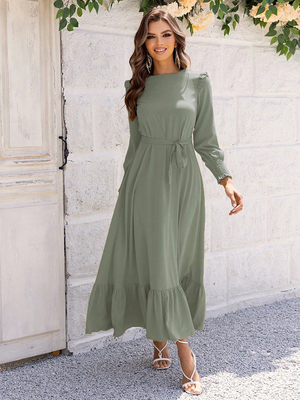 Robe Longue à Col Bijou Et Manches Longues En Polyester Chic