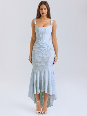 Robe longue à fleurs col carré sans manches robe de soirée plissée sirène pour femmes 2025 & Mode Femme > Robes > Robes de soirée