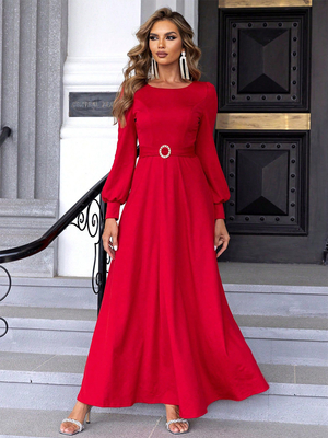 Robe longue élégante col rond anneau détail robes de bal de promo & Mode Femme > Robes > Robes de soirée