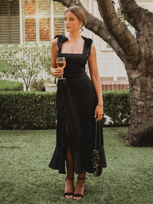 Robe Mi-longue Femme en Mousseline avec Bretelles à Col Carré avec Volant Coupe Cintrée Bas Evasée Unicolore Robe Femme Sexy & Mode Femme > Robes > robe midi ...