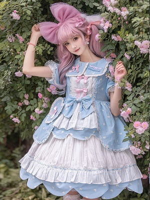 Robe Mignonne Lolita Robe À Manches Courtes Col Rabattu Carré En Polyester & Vêtements de Lolita > Robes Lolita > lolita douce