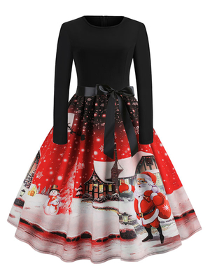 Robe rétro de Noël des années 1950 Jewel Neck plissée en couches manches longues femme longueur au genou robe trapèze & Mode Femme > Robes > Robes Rétro Vintage