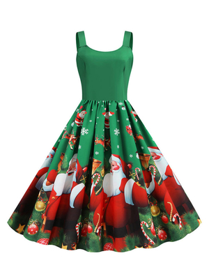 Robe rétro de Noël des années 1950 U-Neck sans manches femme robe Rockabilly & Mode Femme > Robes > Robes Rétro Vintage