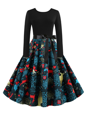 Robe rétro des années 1950 bijou cou manches longues femme motif de Noël robe Rockabilly & Mode Femme > Robes > Robes Rétro Vintage