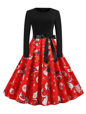 Robe rétro des années 1950 modèle de Noël manches longues Bow Sash Swing Dress & Mode Femme > Robes > Robes Rétro Vintage ...