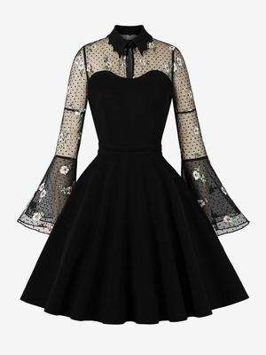 Robe Rétro Des Années 1950 À Manches Longues Pour Femme Longueur Au Genou Robe Rockabilly Bicolore & Mode Femme > Robes > Robes Rétro Vintage