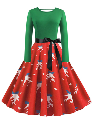 Robe rétro des années 1950 modèle de Noël rouge femme manches longues robe bijou cou Rockabilly & Mode Femme > Robes > Robes Rétro Vintage