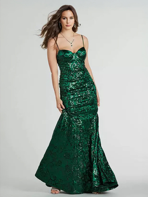 Robe sirène à paillettes verte à bretelles en cœur pour femme 2025 & Mode Femme > Robes > Robes de soirée