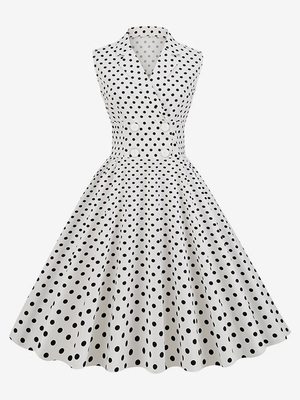 Robe Vintage Années 1950 Col En V Boutons Sans Manches Robe Trapèze À Pois & Mode Femme > Robes > Robes Rétro Vintage