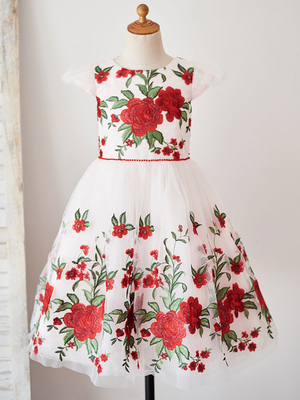 Robes cortège enfant bijou cou manches courtes brodé enfants robes de soirée sociales & Mariage > Robes de soirée pour mariage > Robes cortège enfant